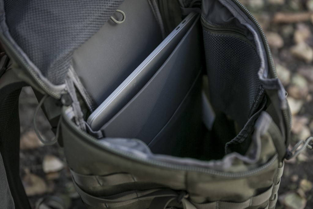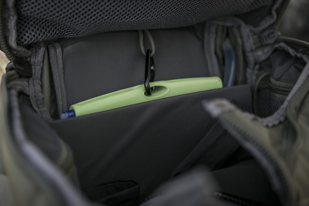 It is possible to carry a laptop and a hydration bladder at the same time.