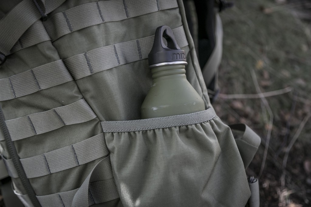 Two large outer pockets allow quick access to water bottles or similar items that have to be stowed away quickly.