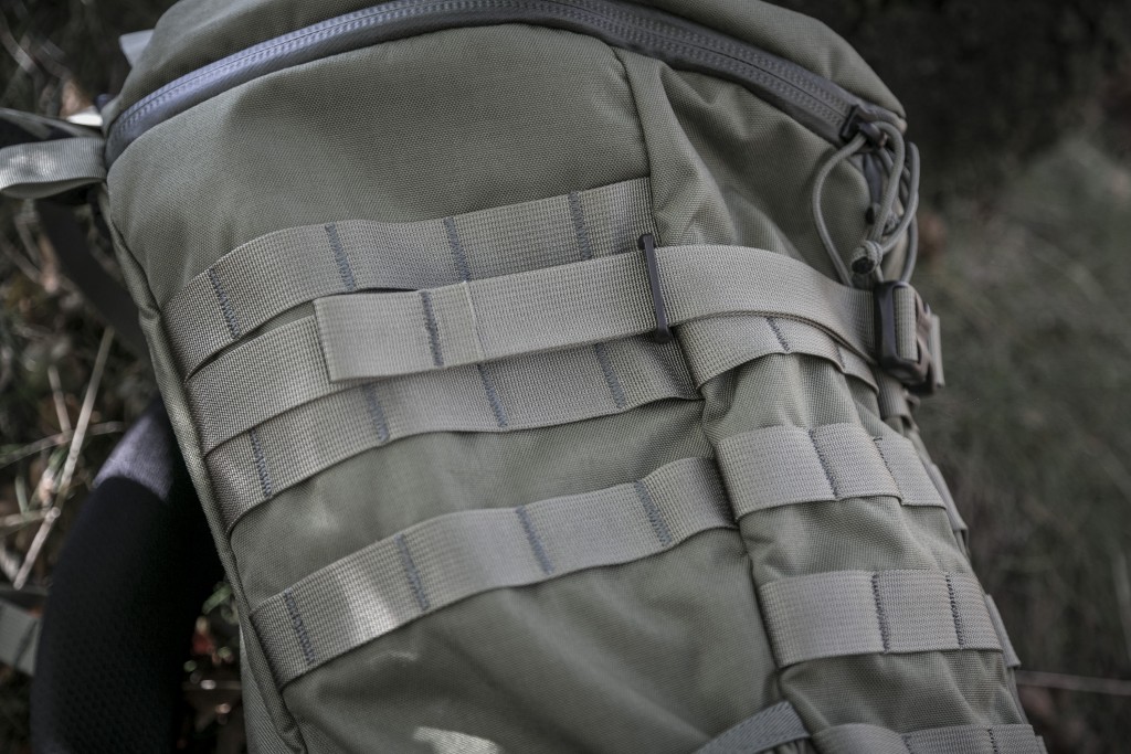 From a visual point of view, there are hardly any differences at first glance. The MOLLE system not only extends on the side parts, but also almost over the entire front and thus offers a variety of attachment options for equipment. Even at the bottom there was no saving on MOLLE, which makes me particularly happy because this part is perfect for attaching a sleeping mat or sleeping bag.